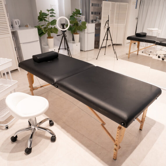 折りたたみベッドも完備しているのでサロンとしても利用可能